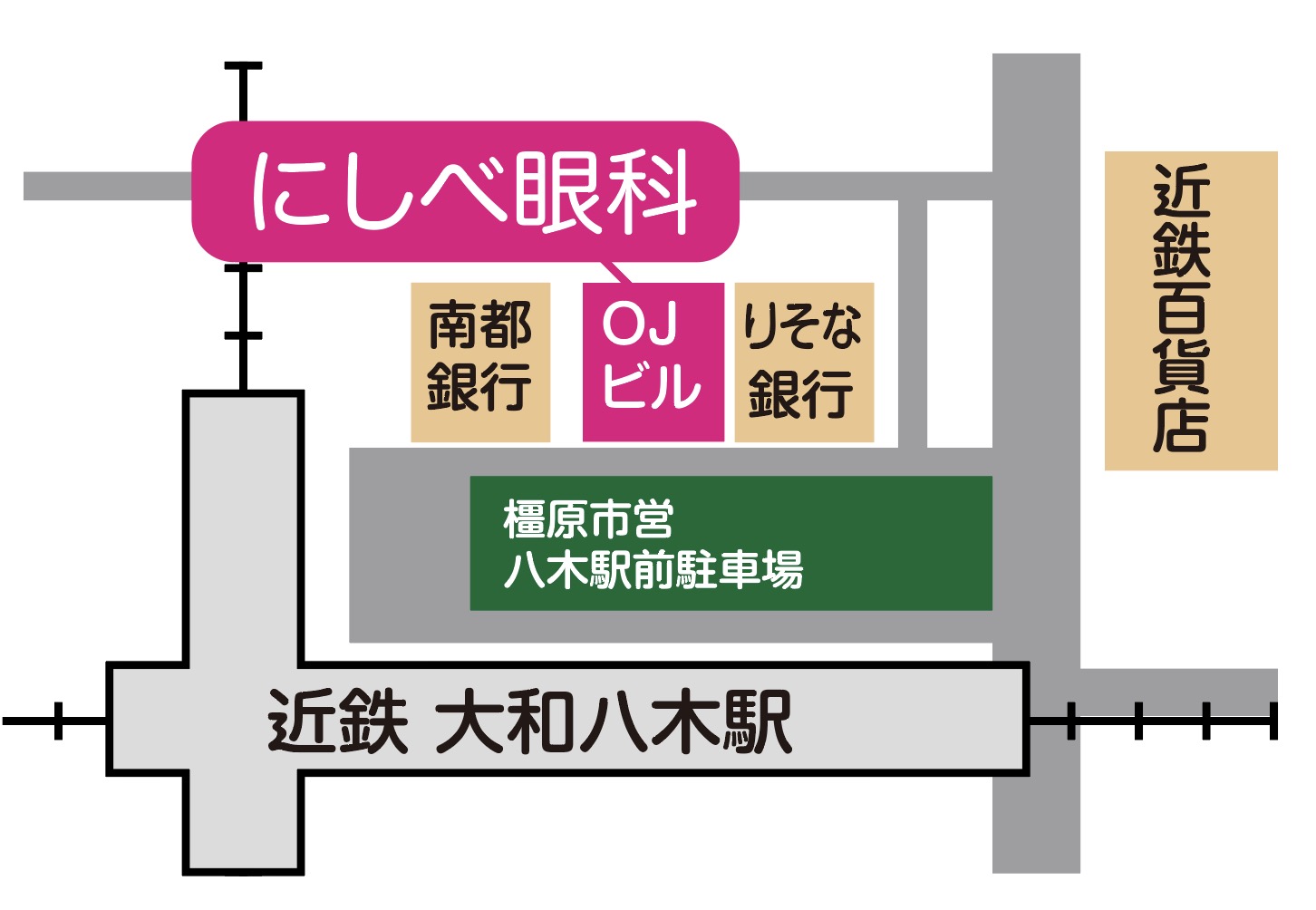 橿原市のにしべ眼科は大和八木駅より徒歩1分の医療ビル内にあり、アクセス至便、また駅前駐車場を無料でご利用頂けます。